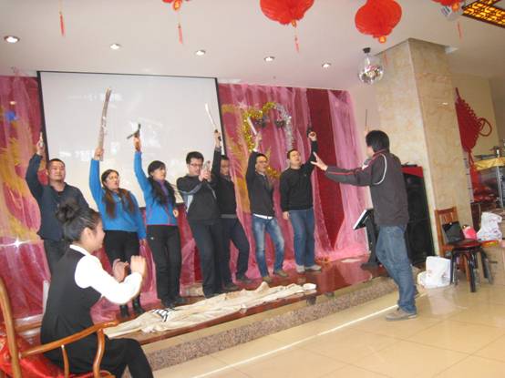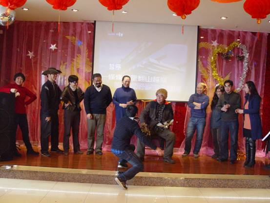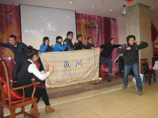 最后是由測試部創意,技術部、生產部、采購部、客服部、人事部、測試部等各部門歷屆表演大腕友情客串、通力協作的壓軸大戲:舞臺啞劇《黃河大合唱》,它從一上場一亮相就緊緊抓住了觀眾的心!這部《黃河大合唱》創意新穎,視覺震撼,表現形式獨特,于嚴肅的主題中彰顯快樂,于快樂的表達中體現正有人的愛國情懷,它不僅顛覆了傳統的二人雙簧,而且用整個舞臺,用全體參演人員的肢體語言、自制道具,還有現場全體正有人的笑聲和掌聲,把整個民族交響樂《黃河大合唱》表現得淋漓盡致,渾然一體;慷慨激昂,表情夸張;動作到位,一氣呵成!可以說,這是一次比平時彩排都發揮出色的互動表演,這是一部由正有員工攜手合作的傾情愛國舞臺大。赫邪妗饵S河大合唱》!